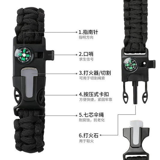 Multi - function Outdoor Survival Hand Rope with Compass and Flint